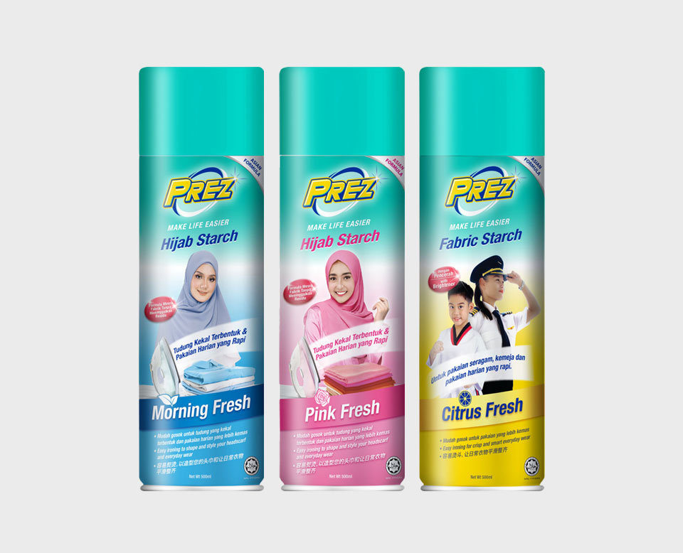 Our PREZ Fabric and Hijab Starch ironing aids glide perfectly onto your family’s clothing, delivering impeccable smoothness without a trace of creases for that sharp and sophisticated look. Whether it’s about maintaining the perfect arch for your headscarf or ensuring your husband and children return home looking fresh even after a long day, PREZ Fabric and Hijab Starch ironing aids are sure to WOW everyone in the family, classroom, and workplace.